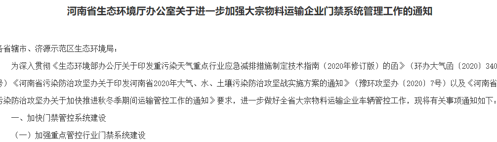 各省已經(jīng)陸續(xù)出臺(tái)了重污染天氣重點(diǎn)行業(yè)績(jī)效分級(jí)的公告,這里也不一一列舉了,既然各省都要對(duì)重點(diǎn)行業(yè)績(jī)效分級(jí),那必不可少的一項(xiàng)就是運(yùn)輸系統(tǒng)的管控建立門禁系統(tǒng)和電子臺(tái)賬,當(dāng)然移動(dòng)源環(huán)保電子臺(tái)賬視頻管控系統(tǒng)將突出常態(tài)化管控。