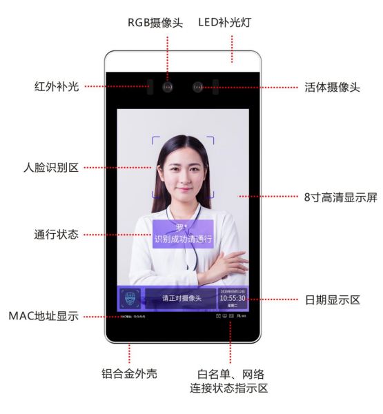 LT-F818-L是一款高性能嵌入式雙目人臉識別終端,終端集成脫機人臉識別、身份核驗、現場人臉采集、黑名單預警、人過留影、活體檢測等功能為一體,采用寬動態高清人臉識別攝像頭,完全適應強光逆光弱光等苛刻環境,具有識別速度快、準確率高、名單庫容量大等特點?纱钆淙四樄さ貙嵜乒芾硐到y、人臉門禁考勤管理系統、訪客管理系統等應用管理系統使用,完美適用于社區、校園景區、酒店、商場、企業辦公寫字樓、公共服務場所、建筑工地等需要進行身份識別和門禁通行控制的復雜應用場景。