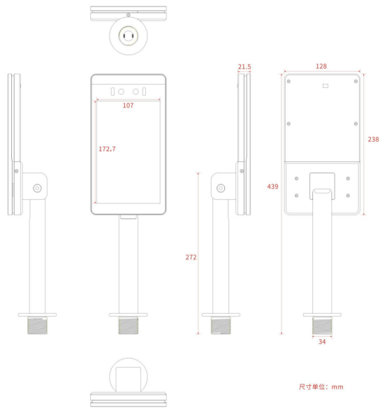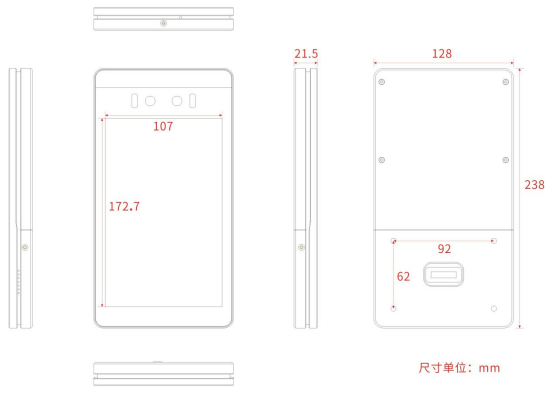 當閘機帶刷卡(身份證\IC\ID)模塊時,安裝人臉終端設備的開孔,應結合閘機高低盡量遠離刷卡模塊,推薦400mm及以上間隔,確保刷卡時抓拍清晰完整的人臉照片。若無刷卡模塊,安裝開孔位置無特殊要求。